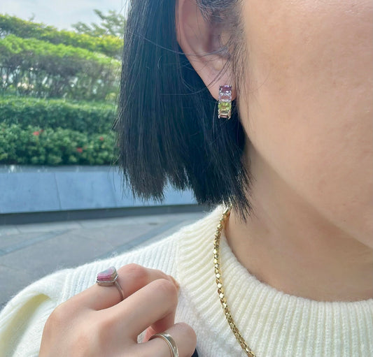 • Amethyst Mixed Peridot And Garnet Sterling Silver Ear Hoop