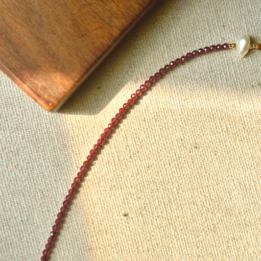 • Garnet And Freshwater Pearl Beaded Gold-plated Necklace