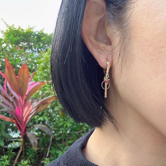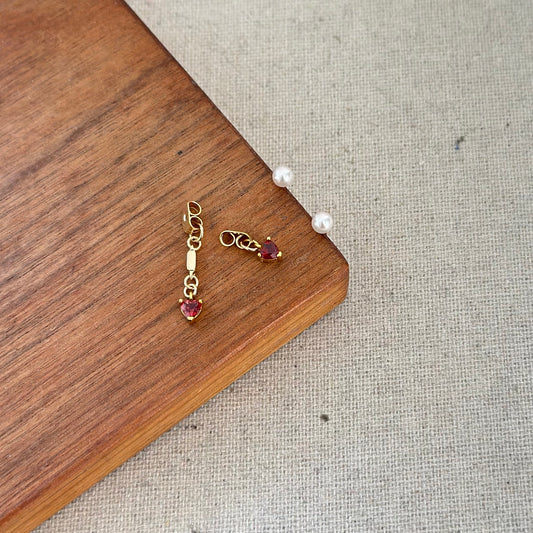• Heart Garnet Dangling Gold-plated Ear Hoop
