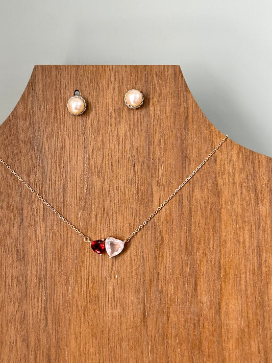 • Rose Quartz And Garnet Heart Rose Gold-plated Necklace