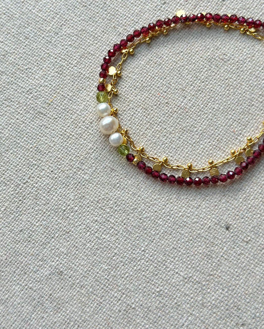 • Garnet And Peridot Beaded Double Layer Bracelet