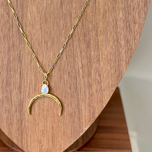 Half Moon Moonstone Clip Chain Gold-plated Italian Sterling Silver Long Necklace