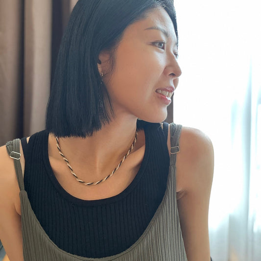Gold-plated Italian Sterling Silver Triple Tone Braid Necklace