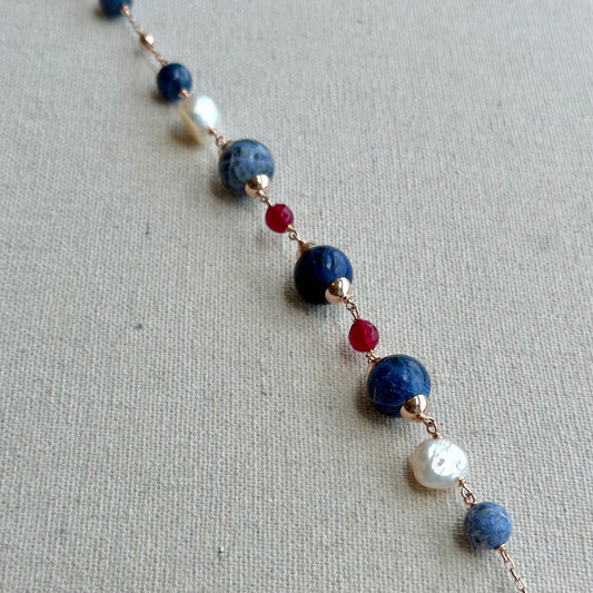 Sodalite Mixed Ruby And Freshwater Pearl Beaded Rose Gold-plated Italian Sterling Silver Necklace