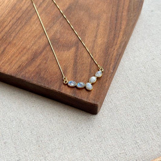 Moonstones V-shaped Box Chain Gold-plated Necklace