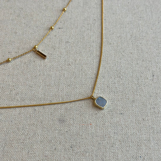 Moonstone Double Layer Dotty Chain Gold-plated Sterling Silver Necklace