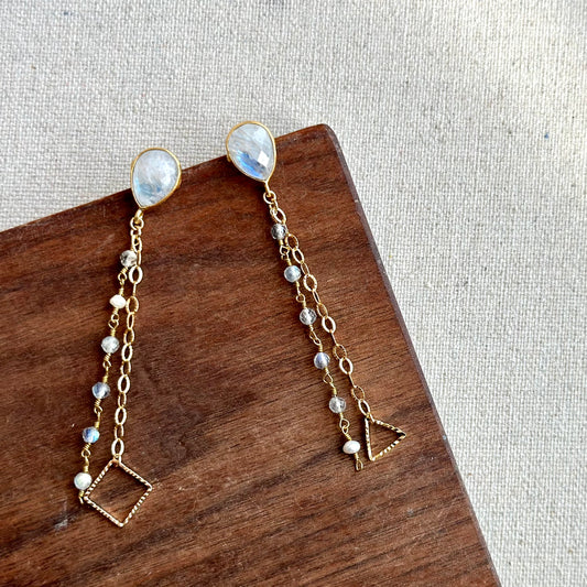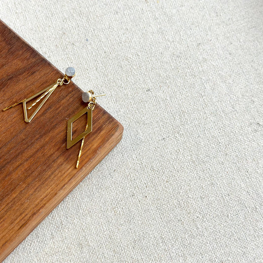 Moonstone Raw Stone Geometric Layering Two-way Gold-plated Earring