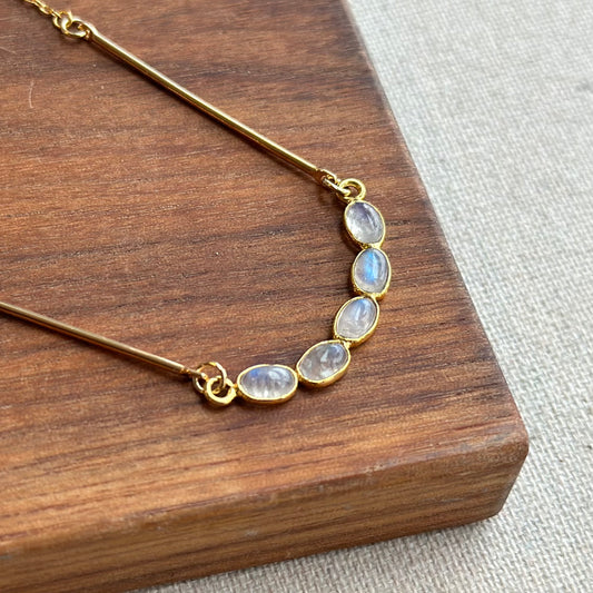Curved Moonstone Mixed Chain Gold-plated Sterling Silver Necklace