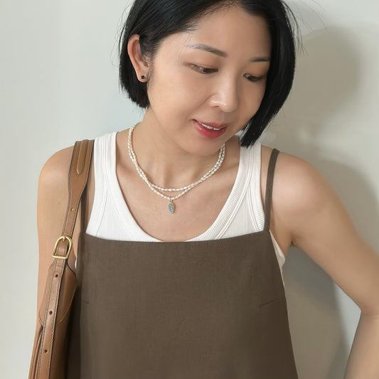 Freshwater Pearl Beaded And Labradorite Leaves Double Layer Necklace