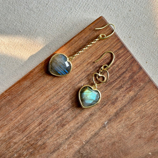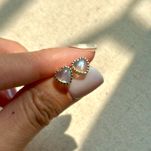Golden Rutilated Quartz And Labradorite Textured Stud Earring