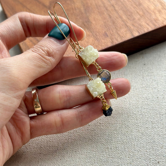 Druzy Square And Labradorite 14k Gold-filled Earring