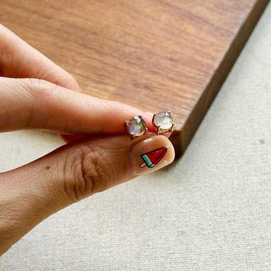 Labradorite Prong Set Rose Gold-plated Sterling Silver Ear Stud