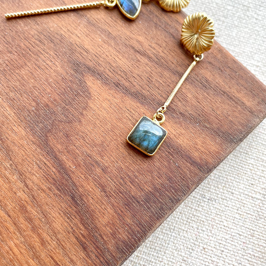 Flower Stud Asymmetric Labradorite Earring