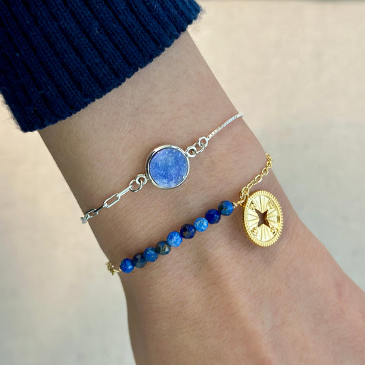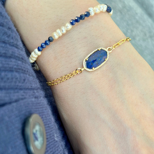 Lapis Beaded Adjustable Gold-plated Bracelet