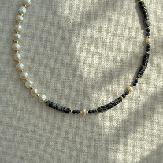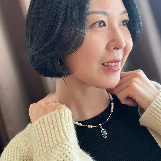 Lapis Pendant And Freshwater Pearl Mixed Lapis Beaded Two-way Necklace