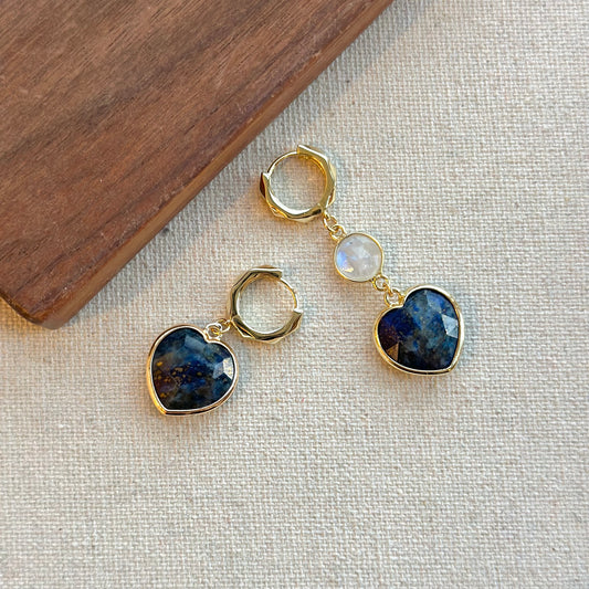 Lapis Heart And Moonstone Gold-plated Sterling Silver Ear Hoop