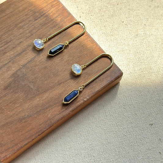 Lapis And Moonstone U-shaped Gold-plated Ear Stud