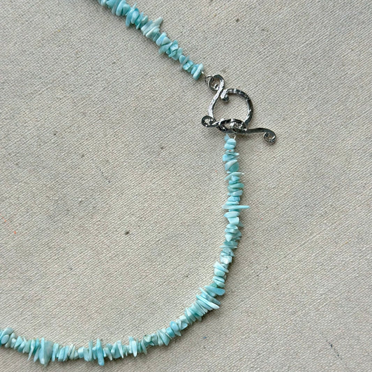 Two-way Larimar Beaded Hoop Toggle Sterling Silver Necklace