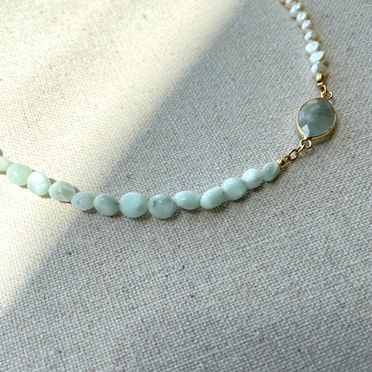 Aquamarine With Larimar And Baroque Pearl Beaded Choker Necklace