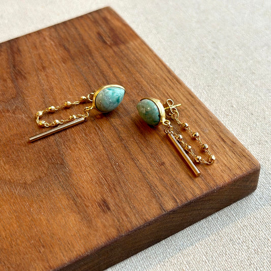 Larimar Stud And Chain Hoop-like Gold-plated Earring