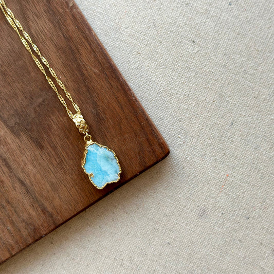 Larimar Pendant Two-way Gold-plated Necklace