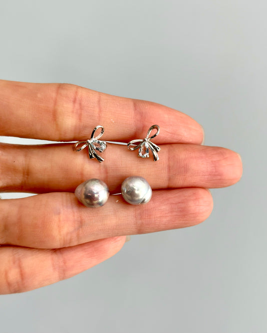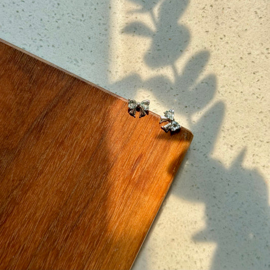 • Aquamarine March Birthstone Bow Sterling Silver Ear Stud