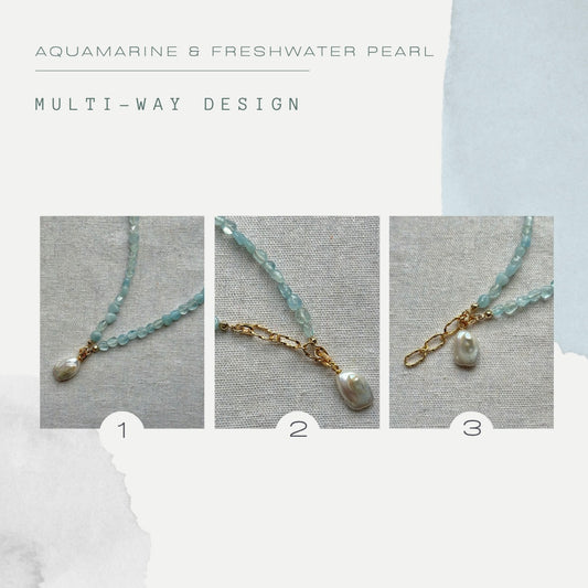 • Multi-way Aquamarine And Baroque Pearl Beaded Necklace