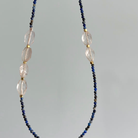 • Lapis And Aquamarine Beaded Asymmetric Necklace