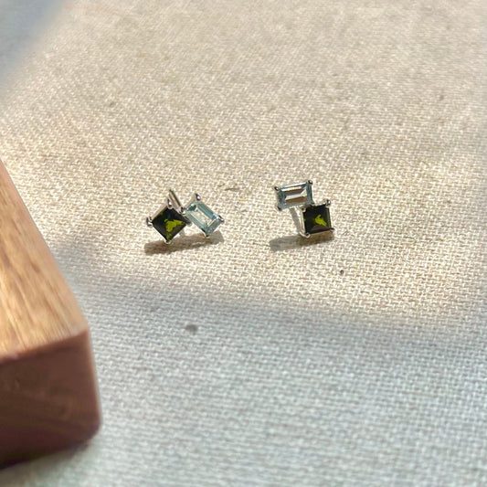 • Aquamarine And Green Tourmaline Sterling Silver Stud