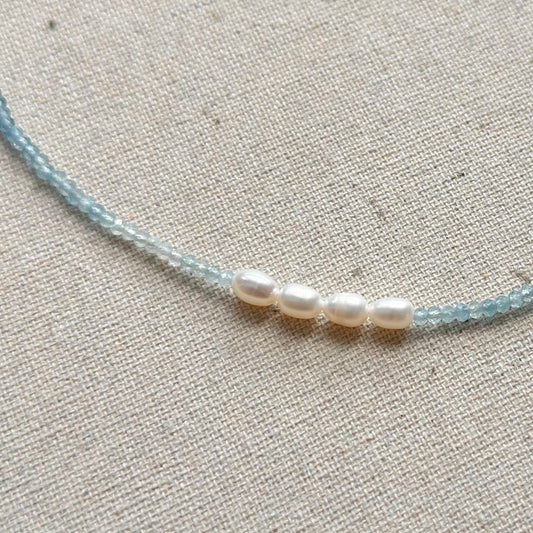 • Aquamarine And Freshwater Pearl Asymmetric Beaded Necklace