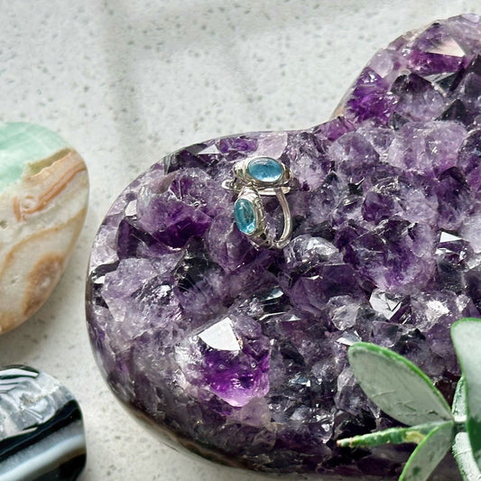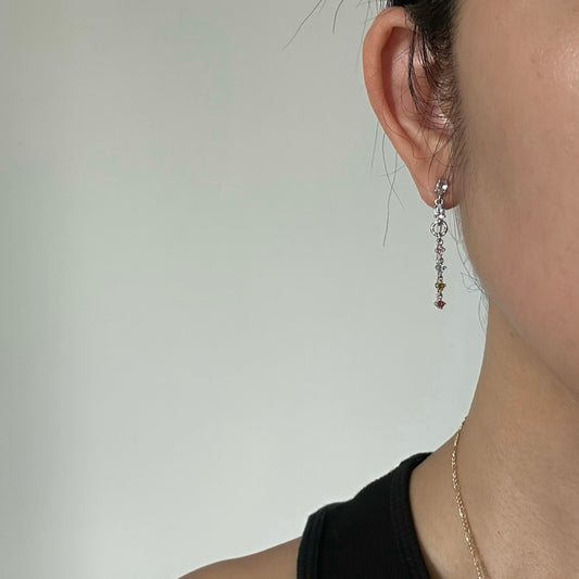 Aquamarine And Tourmaline Asymmetric Sterling Silver Earring