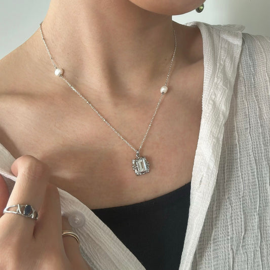 • Aquamarine And Freshwater Pearl Sterling Silver Necklace