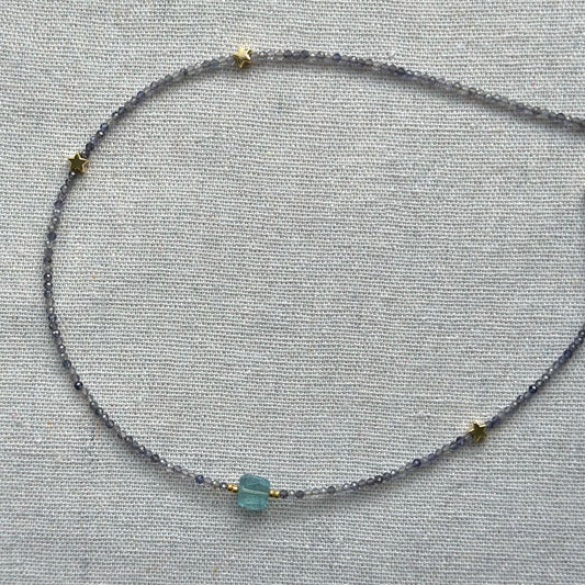 • Aquamarine And Green Amethyst Heart Beaded Necklace