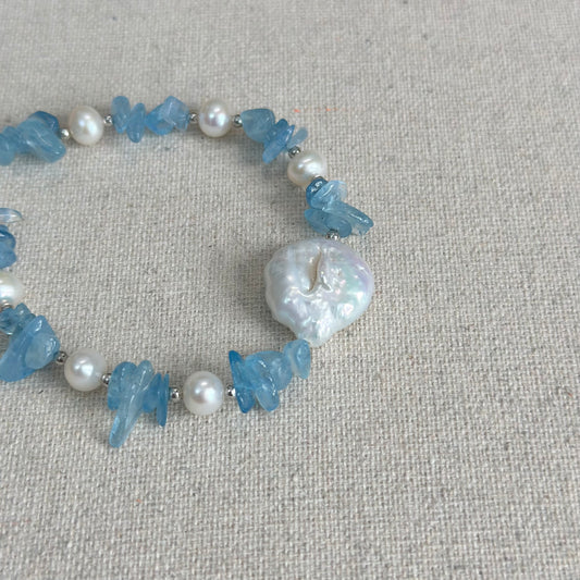 Aquamarine And Baroque Pearl Beaded Bracelet