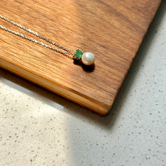 Emerald And Freshwater Pearl Sterling Silver Necklace