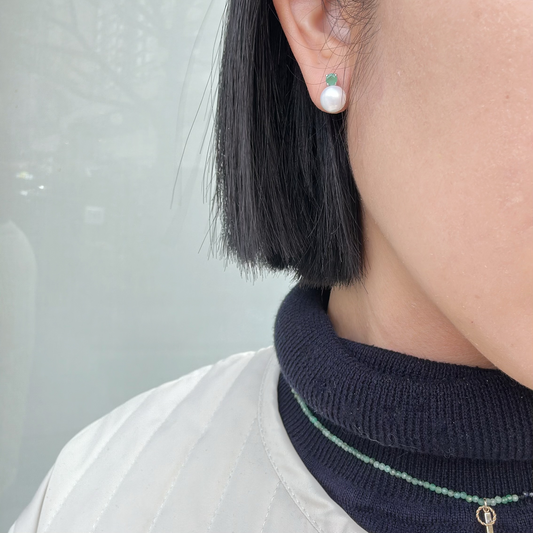 Emerald And Freshwater Pearl Sterling Silver Ear Stud