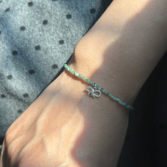 Blue Sapphire Mix Emerald And Bow Charm Beaded Necklace