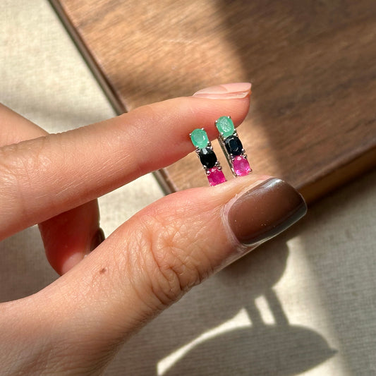 Sapphire Mixed Emerald And Ruby Sterling Silver Ear Hoop