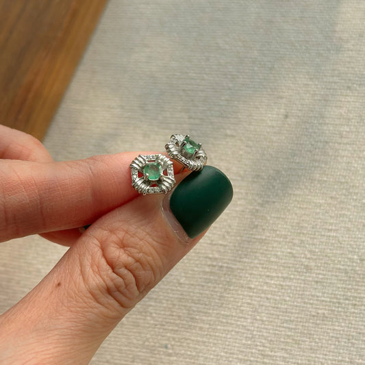 Emerald May Birthstone Prong Set Sterling Silver Stud