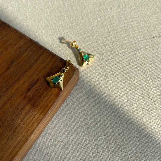 Emerald And Sapphire The Triangle Gold-plated Sterling Earring