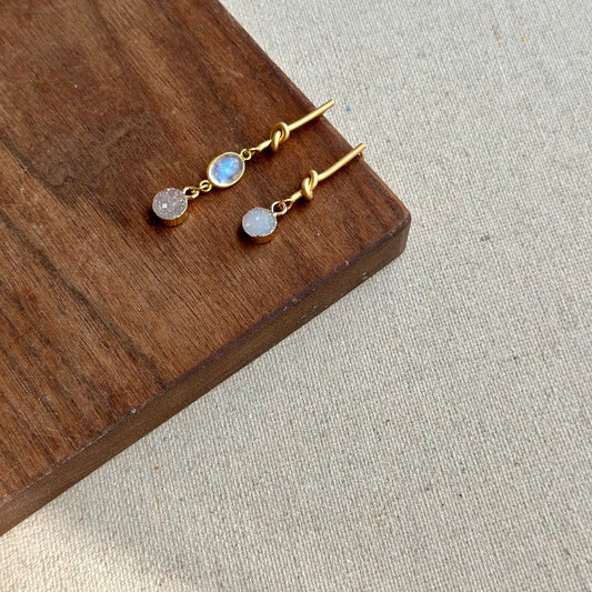 Druzy Stone And Moonstone Knots Gold-plated Earring