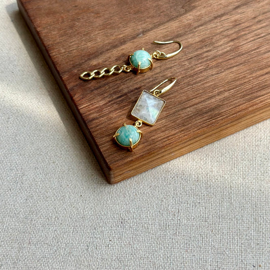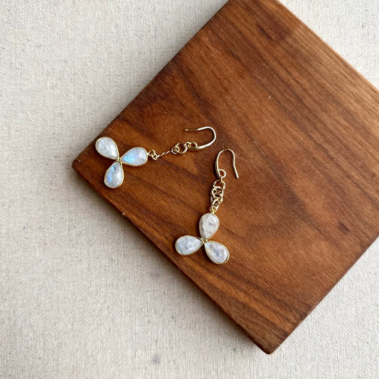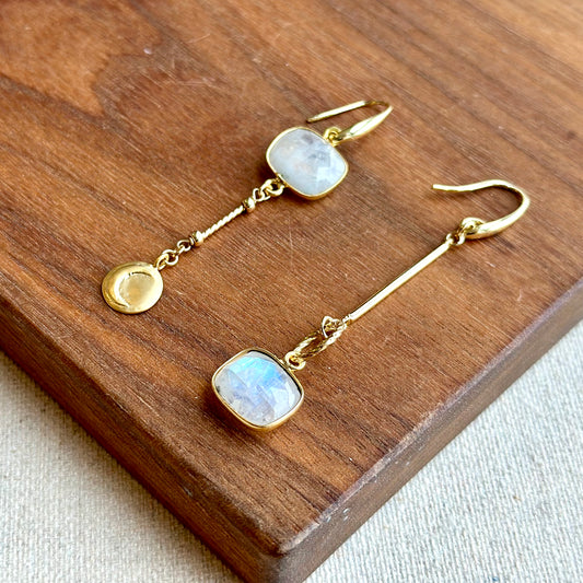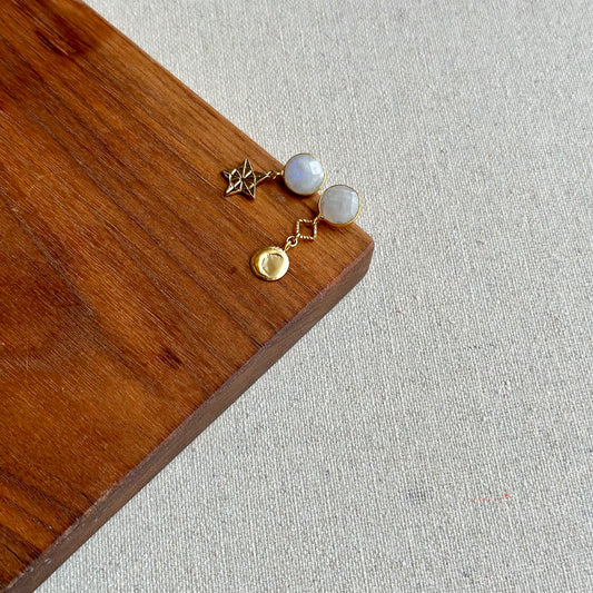 Rainbow Moonstone Asymmetric Dangling Gold-plated Earring