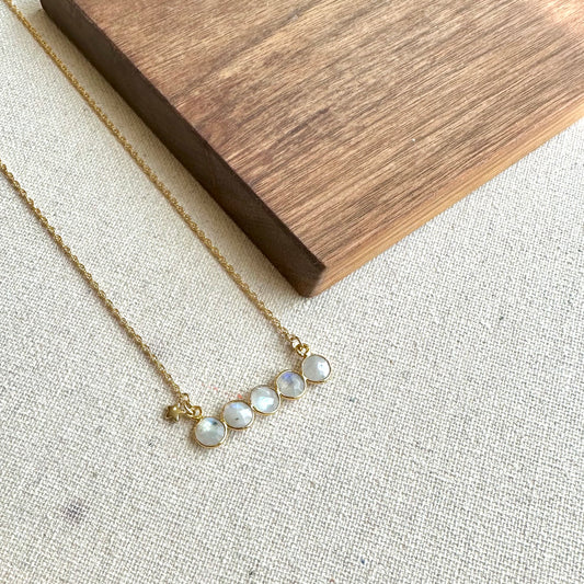 Moonstone In Three Double Layer Gold-plated Sterling Silver Necklace
