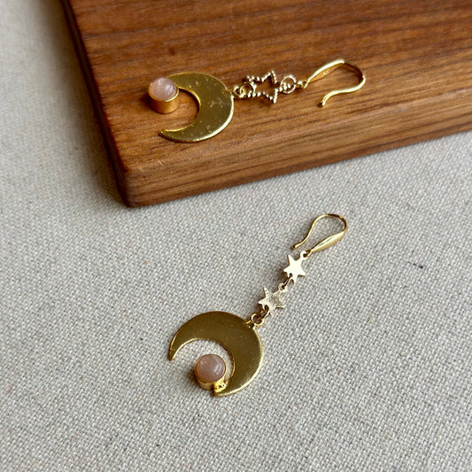 Peach Moonstone Magic Star And Moon Gold-plated Earring