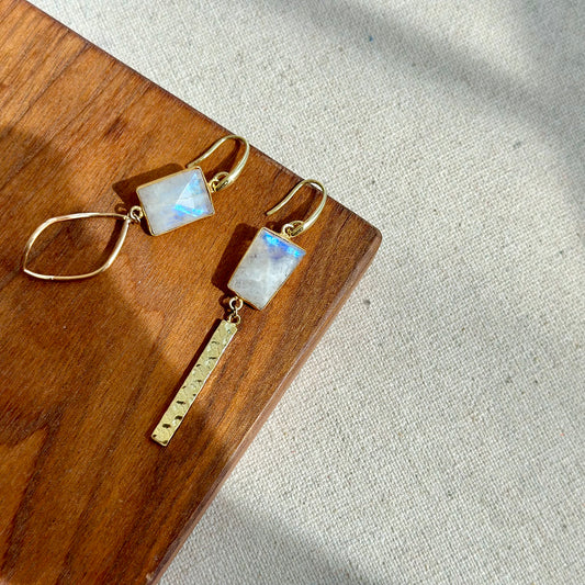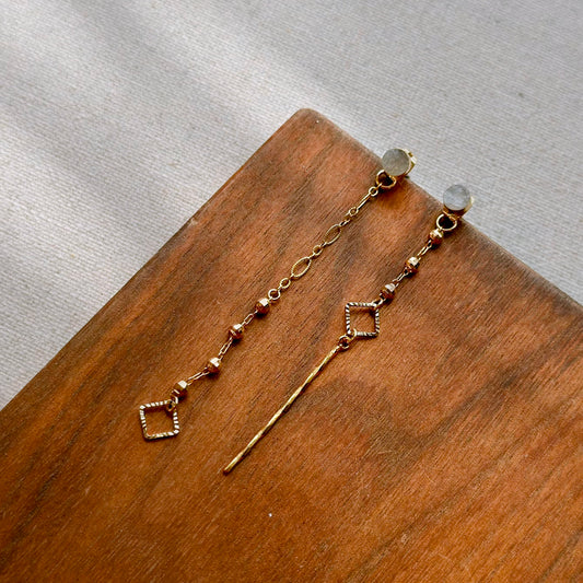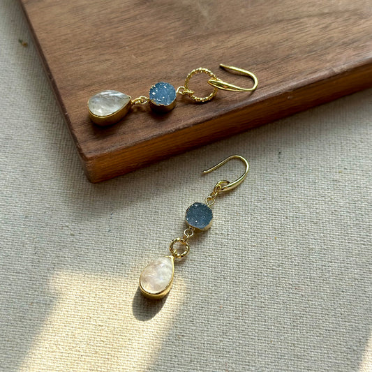 Moonstone Raw Stone Dangling Two-way Gold-plated Earring