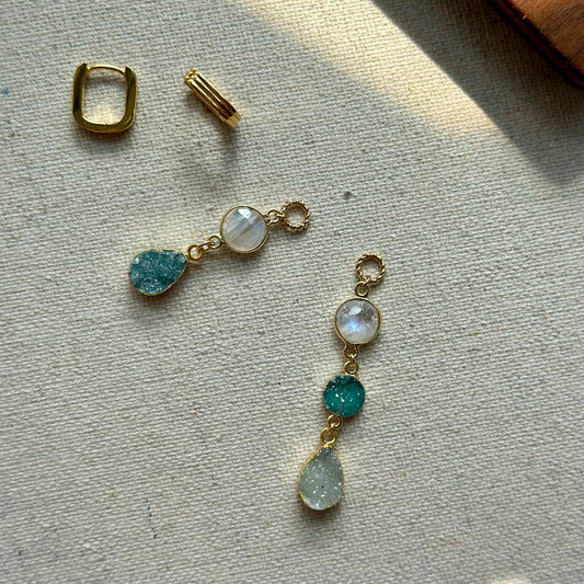 Moonstone Green Druzy Mixed Two-way Gold-plated Ear Hoop