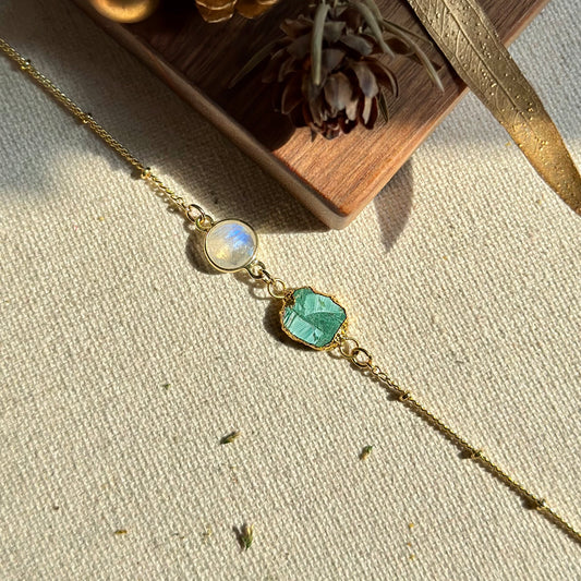 Malachite And Moonstone Dotty Chain Gold-plated Necklace