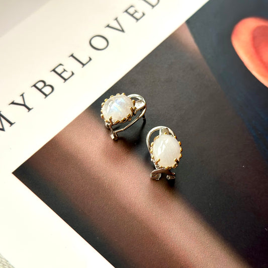 Moonstone Gold-plated Two Tone Sterling Silver Hoop