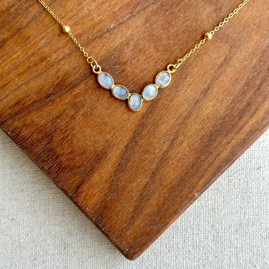 Moonstones V-shaped Dotty Chain Gold-plated Sterling Silver Necklace