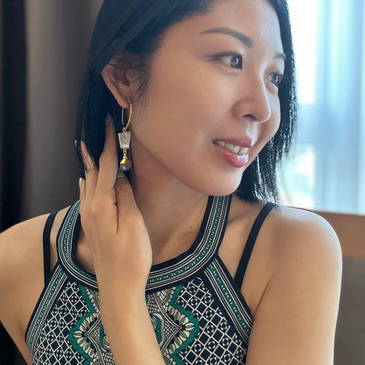 Green Cat's Eye And Moonstone Asymmetric Gold-plated Sterling Silver Earring